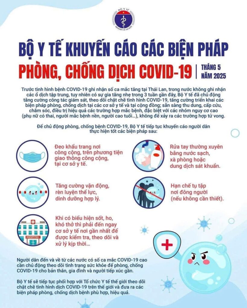 Trước diễn biến phức tạp của dịch COVID-19 tại khu vực, đặc biệt là sự gia tăng số ca mắc tại Thái Lan, Bộ Y tế khuyến cáo người dân chủ động thực hiện các biện pháp phòng, chống dịch nhằm bảo vệ sức khỏe bản thân và cộng đồng.